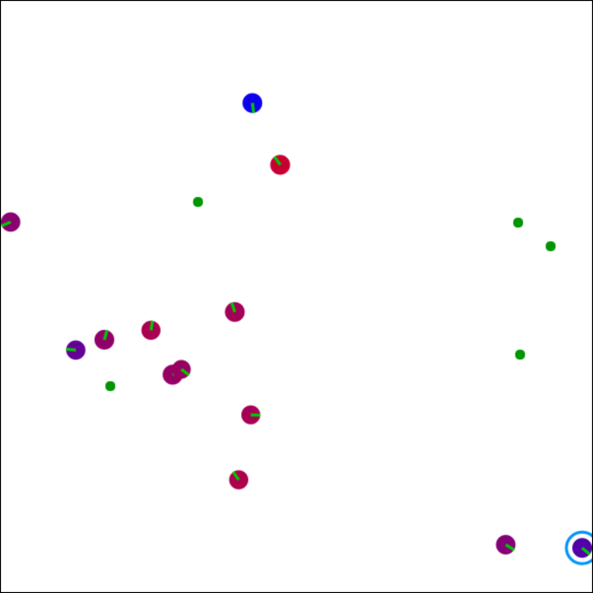 Little dots move around looking for food, reproducing, dying, and evolving over time. Play with…